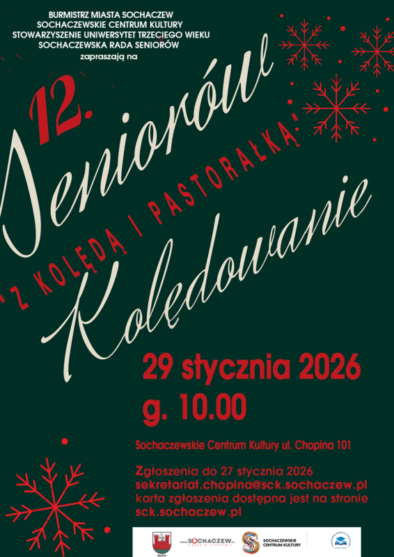 Sochaczewskie Centrum Kultury wraz ze Stowarzyszeniem Uniwersytet Trzeciego Wieku serdecznie zapraszają na dwunastą odsłonę „Seniorów Kolędowania”. Wydarzenie odbędzie się 29 stycznia o godz. 10.00 w siedzibie SCK przy ul. Chopina 101.